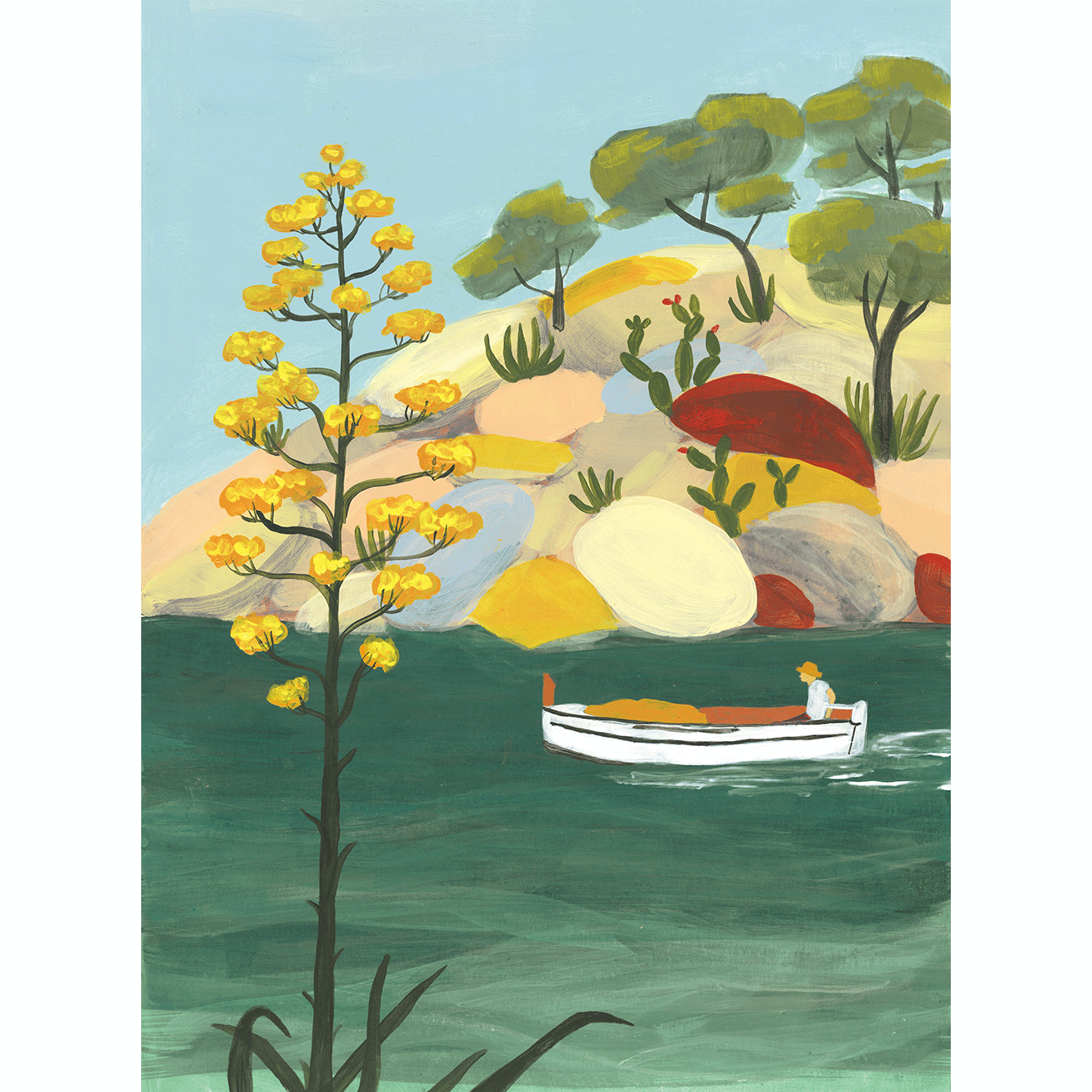 This “Cove with boatman” illustration is printed on 300gr high quality recicled paper from my original acrylic painting.