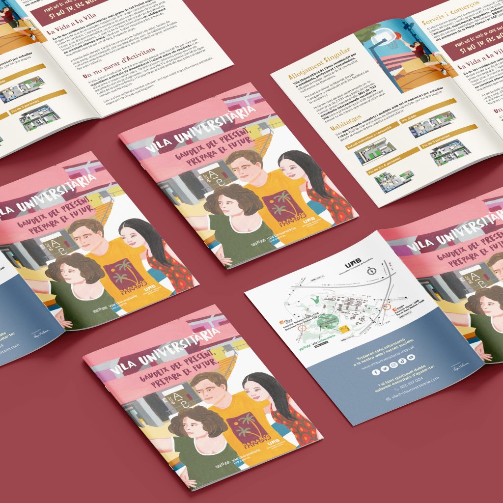 Illustrations for the new graphic image of the Autónoma University Village, located in Barcelona. Graphic design by Vikini Studio.